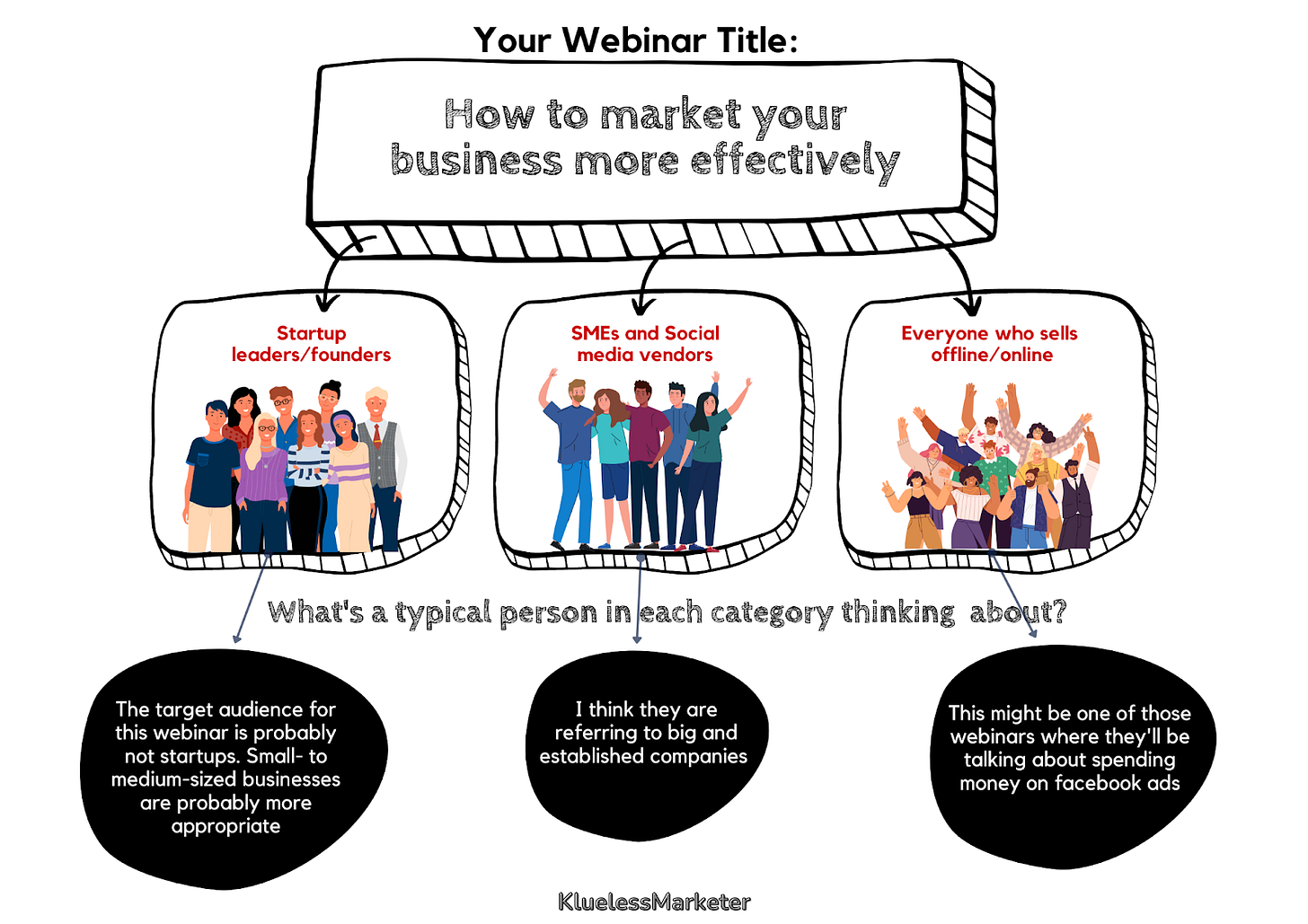 Let's say you're hosting a webinar about the best ways to market your small business. Your target audience is very narrow: only people who own small businesses will benefit from this information. However, your webinar title reads "How to market your business more effectively."